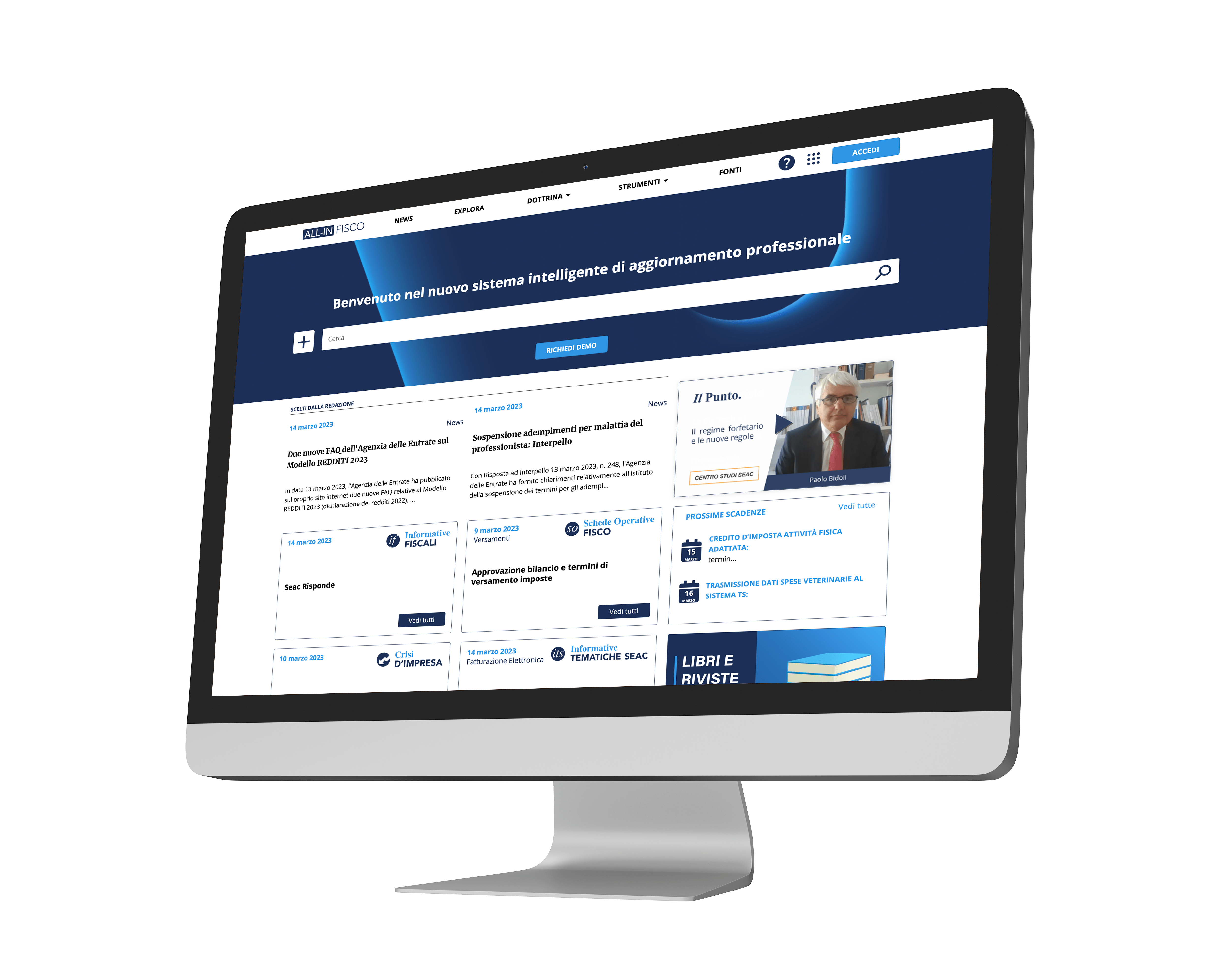 Integrate in ALL-IN Fisco trovi inoltre 3 rubriche tematiche verticali studiate dagli esperti SEAC per fornirti tutte le informazioni utili in materia. Tutto ciò che devi sapere, costantemente aggiornato per la tua professione.